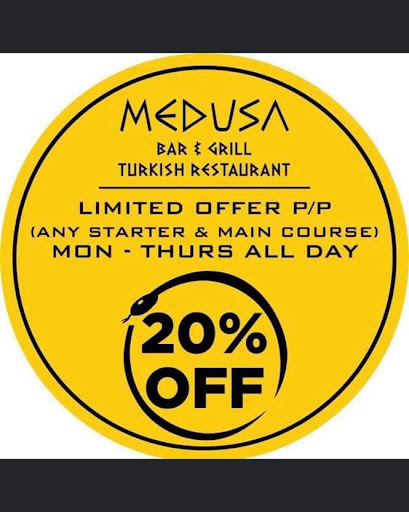Read moreMisleading, expensive and rude staff. We were very much looking forward to spending an evening at Medusa, enjoying the food and atmosphere. It came highly recommended from friends and family. It's actually 40 minutes away from us but it was our first evening out in a long time and we wanted to explore Turkish food. Since we visit Lancaster multiple times a week, we thought it would be perfect to support this business. We arrived a little early and were allowed to choose a table of our choice. It was very quiet. 3 other tables in. The food was served quickly and was nice but we found the portions were small for the price. We unfortunately then experienced a very uncomfortable encounter. The waiter had noted my partner had finished his main meal (i was still eating!) yet he came over and said he'd get the dessert menu, which I found very rude considering I was still eating. He came back with a menu for my partner and also plonked one next to me, still eating. He then took my partners plate and came back and stood right next to me, watching me as I was scooping the last bit on to my fork! I've never felt so uncomfortable and rushed in all my life. I quickly put the food in my mouth and I had just placed the fork back down on the plate (not yet the knife!) and he had already started lifting it off the table. The food had just entered my mouth. We were honestly gobsmacked. I've never been anywhere and experienced something so uncomfortable and unprofessional as that. He came back just as quick, asking what else we'd like. We told him to give us a minute but he had already made the whole evening very uncomfortable. Never have I ever been stood right over and watched by floor staff as I finished my meal. Shocking. It put me off ordering a dessert and another drink. I just wanted to leave, I felt so uncomfortable. My partner still ordered a dessert, which was delicious. Contrary to the early eagerness of being stood over and clearing a barely finished plate, my partner was sat with the dirty plate in front of him for 20 mins before it was cleared away. This place was not busy. We then asked for the bill. Full price for everything. Yet all over Facebook that week and in their own windows were big posters stating 20%off ANY starter and main course. No where did it state/was it made clear that you had to order both a starter and a main course for the 20%off to apply. It legit says ANY course. I have attached the poster that they had displayed. Very misleading! When I asked the waitress about it and said it was misleading,she just apologised. When we told her about the waiter, she again, just apologised. She didn't have anything to say other than she was sorry. Not very helpful. Our evening at Medusa was very disappointing and made us feel totally uncomfortable. I have honeslty never been anywhere else that made me want to run out the door. When you go out to enjoy an evening meal, you don't expect to be in and out the establishment within 55 minutes (especially when you've spent 20 of them with your empty dessert plate in front of you). We definitely will not be returning. Completely...