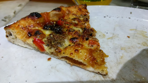 The food arrived quickly, so quickly that they didn’t bring us the starters. But now the pizzas had arrived there didn’t seem much point in asking for the missing starters, not that I had a chance before the waiter placed the plates and wizzed off.