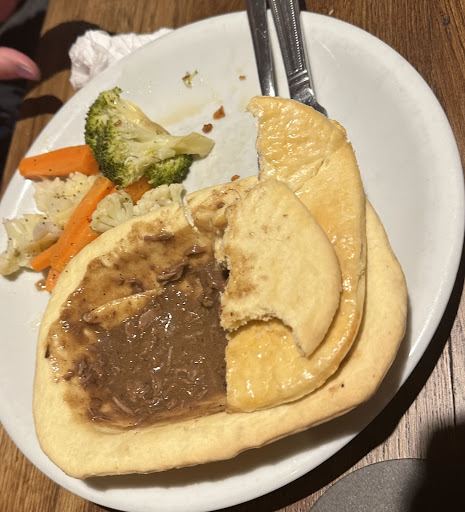 5 minutes later she came back with the same plate of food and said “there you go” and walked away, by this point we also had no cutlery so asked if she didn’t mind getting us some so we could all eat. When we felt the veg and plate they were both still cold and it felt like the pie was the only thing that got warmed up but was still not piping hot. We were very confused. I was very disappointed with the quality of the food and it’s just standard practice in any restaurant that the food is served hot. If we hadn’t already paid beforehand I would have refused as the food wasn’t enjoyable. I won’t be...
