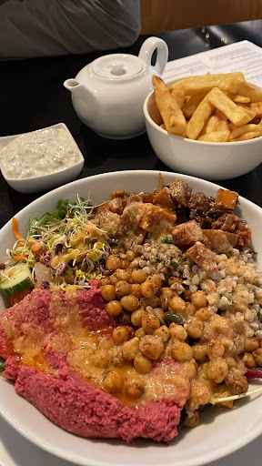 Stopped here for dinner (lunch). There was only one table remaining so I was concerned about the waiting time on food but it was quick as they reassured me it would be! I opted for the falafel and houmous salad, it was a generous portion with 2 wholemeal pitta breads given, I also got ice cream for afters and a soya latte to drink. I got carrot cake to take away.