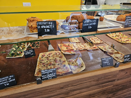 Read moreOne of the best things about Italy is that food is the priority over image and frills. You could be in a little Italian town here. A great selection of pizzas by the slice, arancini, fiori di zucca, calzone, and so on. A simple cafe with tables inside and out, and friendly, helpful service. Four satisfied people relaxing over a long lunch with beer for less than £40. Don't be late, they'll sell out. ...