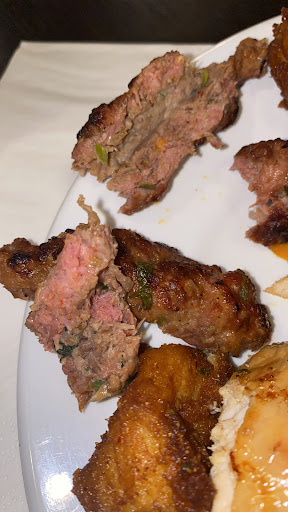 Raw kebabs and lamb chops. see the pics attached. The kebabs were almost entirely raw- I should have taken a photo of the worst one because that was not cooked at all. Still pink and raw in the middle. The lamb chops were also under cooked and so chewy. These were the two items on the buffet I looked most forward to aswell.