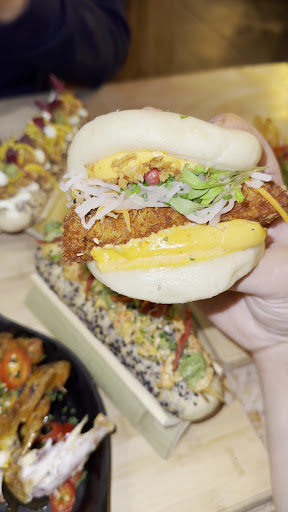 The food is delicious and beautifully presented. Every dish is bursting with flavour! Drinks were non alcoholic and were amazing. • Kyoto Cluck-Cluck Bao - 10/10 • Tsunami Fish Fry Bao - 9/10 • Halloumi Umami Bao - 9/10 • Loaded Salt & Pepper - 10/10 • Katsu Curry Halloumi - 9/10 • Dutty Loaded - 10/10 • Lobster Bao Dog - 10/10 • Black Bean Kung Fu Bao Dog - 8/10 • Franks Hot Sauce Wings - 9/10 • Salt & Pepper Wings - 10/10 • Spicy Korean BBQ Wings - 9/10