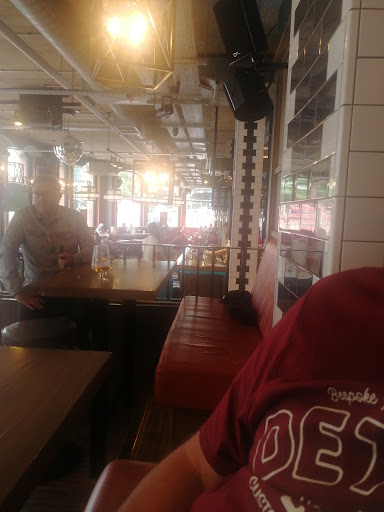 Read moreDifficult review because we had a great time on a very very busy Sunday (16 October '22). Popped in for last drinks before train home after the Leeds game. I was excited because I had managed sports bars in Florida for 20 years and really missed this style of place. There was a promotion for the San Francisco 49's so extra loud and busy but no problem, as I said, great buzz. However, I ordered 2 'Sharers' from the bar for our table. First, none of the bartenders (I asked 3) could tell me if the wings were breaded! They quite happily and with a smile said "Don't know"! So I went to the kitchen and asked the line cooks who confirmed they were. How hard is it for your staff to make the effort?? I also ordered the Spicy Beef Nachos (the size of it was an absolute joke!! £13.95 for a tiny bowl!!). All of this aside, my biggest problem was having spent nearly £30 on two dishes nobody brought napkins, cutlery or table condiment box. Food dumped on table 19 and that was it! I went and got what we needed. Maybe they were just too busy to give good service or maybe they are constantly so busy they don't need to worry about it. Anyway, got it off my chest and small simple tweaks to food knowledge and service could make all the...