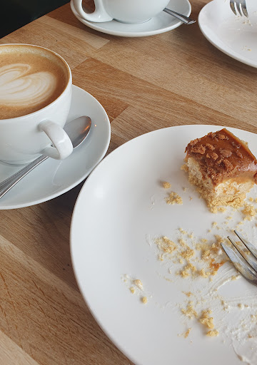 What a lovely little cafe!! I first visited a couple of months ago and had some absolutely wonderful cream buttery homemade Biscoff cheescake....after dreaming about it I finally had the chance to go back yesterday. I wondered if I'd feel the same....I most certainly did!! Best coffee, (mine was a flat white)☕️ I've had in a cafe for years!! I can sometimes feel a little uncomfortable when dining out but this place gave me a very welcoming feel...The girls are so sweet and friendly. What I do like is that they don't play loud music here like some cafes do...its relaxing and pleasant to enable you to have a quiet chat with friends and family or a "working" lunch. The first time I went my friend had a salad 🥗 and said it was delicious 😋 I opted for a snack of Houmous and toasted pitta to dip with mmmm Looking forward to the weather improving to try out their very adequate outdoor eating area...covered too for our...