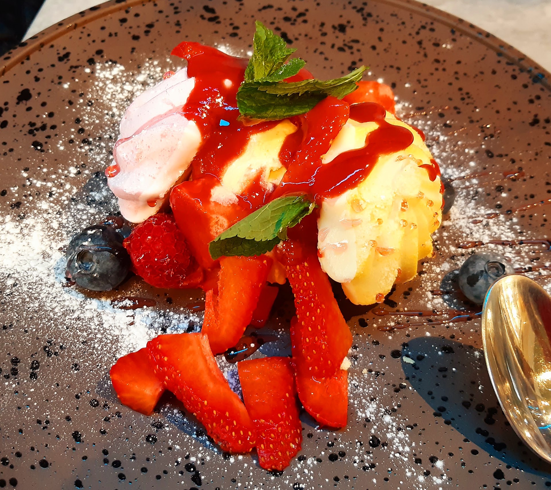 On arrival we asked if it was ok to sit outside,the lady said yes and then just said ,3 big breakfasts ,without even offering a menu .We asked for a menu and she just brought out breakfast menus,so I asked for a main menu,and if i could have two cokes and a cranberry juice. After checking out the menu 2 of us decided on the fluffy pancakes with fresh fruit,which we were bluntly told "no pancakes ,no fresh fruit " We found the lady to be quite brusk and lacking in good customer service. We had our drinks of Luke warm flat coke and left. Very...