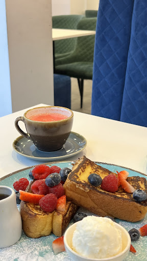 Cheated! I felt cheated as I paid for a large cup of English tea only to be served a 3/4 filled small teapot. And this was after I'd been given a wrong order of karak tea. As we were the only customer in on valentines night, I expected a bit better service and more foresight! Cheated again; the croffle was definitely NOT a croffle. Shown in the fancy menu colour book, as 2 pieces of a 'cross between a donut and a croissant'. ( I've had one before in Bradford and it's been decadent) This was merely a single not so fresh croissant been moulded onto a waffle machine; for which they charged almost £6.00!!! My husband had the chocolate orange waffle. In the menu, it clearly says it comes with ice cream. But we were asked if we wanted ice cream?! It came after 5 minutes in a miniscule bowl. I wish I'd taken pictures! When I peered into the shop, as we walked by; the seating and beautiful lighting beckoned us in. Also I noticed the shop empty on Valentines night, so my husband and i decided to give them some business. I wanted to support the shop. I had high expectations, initially bedazzled by the beautiful menu, and decor, thinking in my head ''I'll try the savoury menu some day soon''. Alas ...maybe I'll spend my money elsewhere! The service was slow and definitely was...