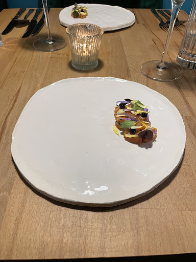 The staff greeted us by name, which was disconcerting as this made it clear to me that we were the only diners. As we booked a week in advance, the only reasonable time available was 5pm. I assumed this would mean a 5pm-7pm sitting, however we were the only diners for at least 30 mins. Sitting alone in an empty restaurant, placed next to the coat rack, did nothing to stoke any sense of ambiance. I'd much, much rather have seen no availability, than be the only diners for a very long stretch of time, as the vibe was dead on arrival. This was compounded by blaring music which cycled through Madonna, Jack Johnson, Alicia Keys and the Lighthouse Family, with zero cohesion. This early 00s pop-music jukebox was far from the elevated, Michelin-punching experience we were anticipating.