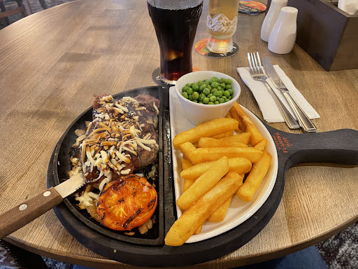 TBH I have only ticked the one star 🌟 rating due to allowing me to rate this experience, and to be fair I'm focusing on the food side of the evening, food was order over the app, three different orders were place within 5 minutes due to poor reception. After 50 minutes 3 of the 5 meals came out with a reference to the remaining being plated up and would be out shortly. After 20 minutes I challenged the size of the plate! I was offered a free pint with the promise that the meals would be out.... After a further 15 minutes and ample of other meals being served to other customers I went to see what was happening at which point I was offered a whole round of drinks... When the food arrived it was shocking, obviously not a chef who knew how to cook a steak! Very busy at the time of my visit which obviously was part of a supply and demand 🤔 issue, however more could and should have been rectified promptly with a fully refund, not one to complain, as the atmosphere, beer / drinks was good, I would just recommend if you want to eat here choose a quieter day and time for a more favorable...