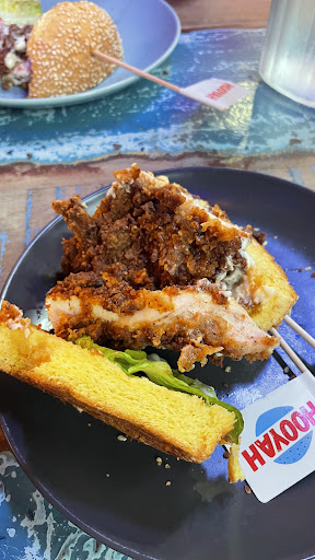 The fry chicken in the chicken burger just taste burnt, overcooked, dry.