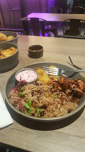 Read moreHusband and myself went for lunch on Tuesday around 2.30pm.Was a lunchtime offer on for £10 i believe with a soft drink/food but we chose to have cocktails which were not part of the deal. Dispite this, they were pretty good! Wanted an ingredient swapped out of my Rum cocktail and were only too happy to oblige..thank you. Food was amazing! Husband had Curry Goat, rice and peas with slaw and plantain..I chose Jerk Chicken with all the same accompaniments plus side of Fried dumplings and Mac and Cheese. Portions more than enough..taste was like eating with my parents on a Sunday! Was lovely to have the chicken off the bone( tho I don't mind either way)..was spicy and slightly sweet but went fantastically with the rice which had that Coconut cream backdrop..yum! Fried dumplins came in the shape of a twist but were made fresh to order..oh my gosh, could hardly put them down! Slaw was gorgeous as was the 4 cheese Mac..side portion of hot sauce provided when asked for.Curry Goat was so full of flavour and I loved picking out the strands of fresh Thyme like mum and dad used to make. Compliments to the chef 👏..place felt very relaxed with some fab tunes playing ..service was great too..would have given service a 5 out of 5 but waited maybe 5 minutes too long between drinks served and food order taken but that blip said, would highly recommend anyone to try this place out! Will be returning on a family visit to try out the Sunday menu but a welcome addition to Leeds City Centre..well...