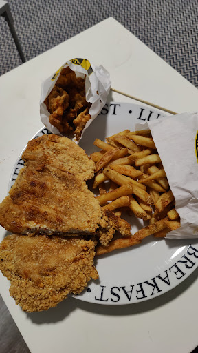 Beautiful classic music. Mozart slaps. Chicken was crispy. Chips were plummy. Bubble tea looked good but I’m still scared from when I nearly died having a previous boba tea and choked on the bubbles. However I’d maybe be willing to try again in the near future based on this place. Not yet though still need more therapy. I appreciated the little stick to check the crispiness of the chicken. Can confirm it was crispy. Colleague got given extra chips cause they thought they’d still be hungry having only ordered the tofu. They chickened out of getting any meat (ahaha). I appreciate that it’s a nice touch. Table was clean and had 4 legs. Self service machine was hard to work for my colleague but I think they’re just a bit thick tbf. Tornado potato blew me away (ahaha) Bubble tea was 100% sugar which is good cause I’m so sweet (ahahah). Overall a solid choice for food. 10/10 would recommend to a hungry friend. Or one who isn’t hungry but they may not want to eat as much. Yellow bag was very yellow reminded me of the sun from the teletubbies very mindful very demure. Only ketchup could’ve done with mayo as well Atmosphere was good but did start raining...