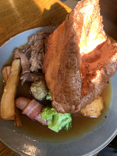 Ā Ā Ā Read moreLovely Sunday dinner!! Itās popular so you have to book (Covid or no Covid). You get your table for two hours which is plenty and during our āslotā we saw two groups of people politely told they were fully booked. Thereās both an upstairs and downstairs bar, the downstairs bar being dog friendly. The booking system asks which area youād like to be in, including outside). The Sunday menu is simply a traditional Sunday roast with a choice of three meats as well as both a Vegetarian and a Vegan roast. The success I believe is itās simplicity. Because the chefs arenāt having to make a zillion different meals they are concentrating on perfecting their roasts. My first test is always whether the veg includes peas, not because I dislike peas but because a lot of pubs serve these as an easy option (easy to cook from frozen). No peas here thoughā¦instead we got perfectly cooked broccoli, carrots and cabbage. The shredded brisket was delish and yaaay parsnips, stuffing and a pig in a blanket and itās not even Christmas!! ššš» Topped off with a huge home cooked Yorkshire pud and no skimping on the gravy! We also shared a sticky toffee pud with again, plenty of caramel sauce. We will deffo book here again!