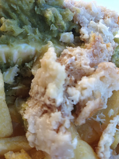 So Otley is a lovely old market town and has a plethora or Fish & Chip shops given it's size. The consensus of asking the odd local was try the Maypole for your best bet on a good chippy experience. So I did just that Fish, Chips & Mushy Peas at a steady £7.50 to takeaway. Incidentally this chippy also has a restaurant to eat in too. Although modest in size compared to most with a sit down option. So back to the food, well a big disappointment quite honestly. Don't get me wrong they weren't shockers but not great either. They were presented well, but everything was quite a bit off the benchmark standard wise. So I was greatly disappointed ultimately and here's why. The fish was really hard to determine what it was? I'm not going back in to ask but have no idea what it was? Probably Cod out of the Cod or Haddock choice? However it may well have been neither as it didn't marry up with the taste of literally thousands of both Cod & Haddock that I've eaten over the last heaven knows how many years. Somewhat strangely though the batter was lovely where it was cooked properly but awful where it was too thick and not close to being anywhere near properly cooked (see images) at all. The chips were very average and lacked being either crispy or soggy with little flavour to boot. As for the mushy peas again really disappointed. Good consistency but very watery flavour meant they tasted dialed down on pure pea taste and a hint too sweet. I really did expect better than they were and whilst not being terrible they certainly missed the mark. May try again but it would only be out of interest to see if they've improved. Though I'm sure on my experience that Otley has better chippies than this one. I will let you know the next...