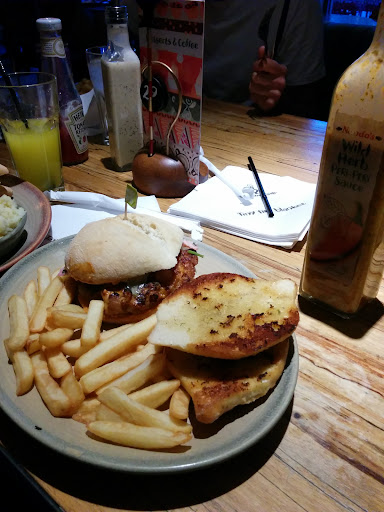 Unfortunately it seems Nandos has really left this place go. The initial service and welcome was very lackluster to to say least. We were sat in a dirty bay, the table had not been properly cleaned the sears were stained, filthy and it had a large rip in the seat. The shelf/wooden top between booths and the shelf had not been dusted in days or more likely weeks as it was thick with dust. The menu was printed on a4 paper with super low resolution making it hard to read and some things impossible to make out. The food arived quickly but was not good, the pittas were dry the chicken not great and stuffed on with little care and the salad was none existant. I did complain to the to manager when I was there and to be fair after first protesting when he did look seem disappointed with the state of the place.