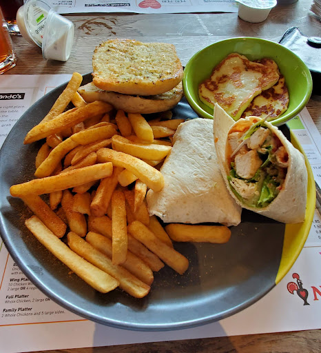 Read moreCurrently sat here in "Nondos". Came in at 7ish told would be a 20-25min wait with 2 tables ahead of us. Yet 5 tables free in the restaurant. Seated at about 7.30pm. Went to order with 1 person ahead of me. 4 available tills, 1 open to take orders and plenty of people generally doing nothing. 15 minutes later my order is taken. Looking at the food counter/hot plate...it's full. Took 15 mins for one of the meals on there to be picked up and served to a customer. Food arrived 25mins after ordering. Was warm rather than hot. As a Nandos lover, I've never had a complaint...sometimes you queue...but at least they give you a seat first. No sign of a Manager...there was what I think was a supervisor (19yr old on a power trip) who did sod all when it was busy but was life and soul when it quietened down. Nandos this one is a Nondos. Must try harder chicken. My Nan do'es better at customer service, management, cooking and...