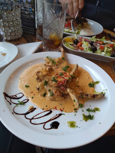 We both just had a main course but we were served a lovely piece of Turkish bread to nibble on. My husband had Adana Skewer - £13.50, which was minced lamb with onions, herbs and a touch of chilli chargrilled on a skewer, served with rice and salad. I had the Moroccan Spicy Lamb - £14.95, juicy lamb cutlets smothered in a special sauce made with crème fraiche, lime, spices, a touch of chilli and a dash of Malibu. I was offered any one of the sides to go with it and chose the salad. We both loved it and I ordered more of the bread to mop up my sauce which was too good to leave. With cokes and a hot drink each the bill came to £38. Not cheap for lunch but we felt it was worth it. The photos are of the actual food we...