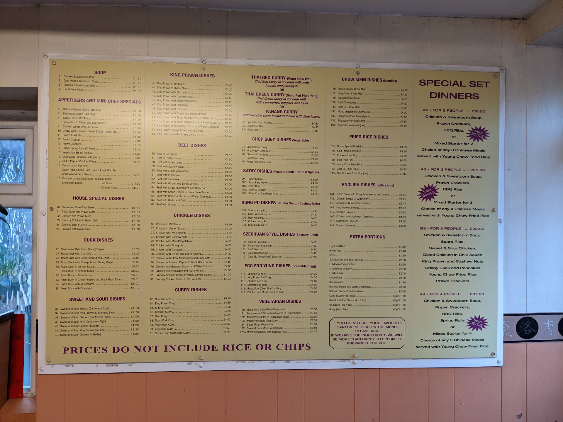 Read moreGot to be the worst Chinese I have ever tasted. Salt and pepper chicken had no chicken in and special chow mien had frozen prawns and there was 3 long black hairs in the noodles ,Salt and pepper chips had been recoooked so many times they were like eating chewy meat. Phoned up to complain and wad told what do u want me to do about it .you should of checked it before u left . Like I'm going to open up the food in the shop to check. DO NOT USE IF U WANT DECENT FOOD . Its the worst I have ever tasted...