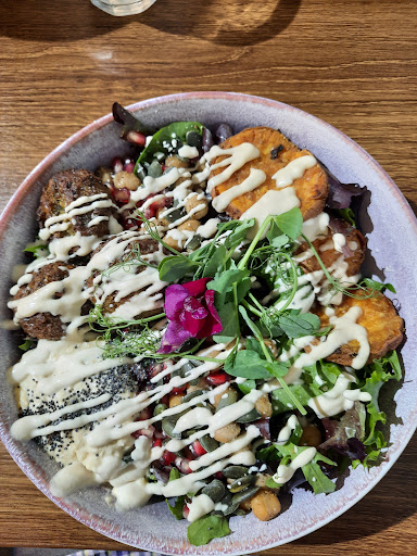 Recently found this place whilst in Horsforth, and it's now one of mine and my partner's favourite places. Everything is plant based, and there are many gluten free options too, including gluten free cake. The food is absolutely incredible! I had the 'chilled bowl' and have had the 'power bowl' too, and both were delicious; so fresh and tasty, packed with healthy things. My partner had the avocado on sourdough and pancakes. He said they were genuinely the best pancakes he'd ever had. We also tried cake, and again, the cakes were fantastic. Full of flavour, light, fluffy, moist and good portion sizes. My partner is not vegan etc but said he could not tell the cake was vegan and that is was perfect, and one of the best cakes he'd tried.The coffee is lovely too, and they have oat, soya and coconut milks available, so there's something for everyone. The whole atmosphere of the place is great; relaxed and comfy; it's a very nice place to sit and have lunch/coffee. The staff were fabulous too- so friendly and helpful, and made us feel very welcome. We can't wait til we can visit again! Definitely recommend a visit to anyone- vegan or not- if you're...