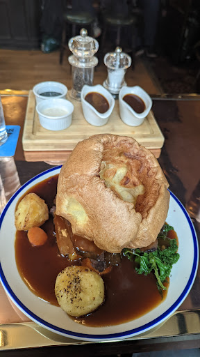 We came for Sunday Roast having read the good reviews, All can say is obviously some people are easily pleased. Our dinner arrived it looked okay at first glance. Until we tried it the little veg we got was cold the gravy was cold, we called the waitress she took it back to the kitchen ten mins later it arrived back absolutely swimming in warm gravy. Needless to say the food under the gravy was just being warmed by the actual gravy I attempted to cut into a roast potatoe but couldnt cut any of the three I got. Due to them being dehydrated I hate half of Yorkshire pudding and called it a day, My partner managed to eat a bit more than me, He said just shows you can't always go off reviews. When the waitress came to take our plates it was obvious with the amount of food that was left there was something wrong and to be fair to the waitress She asked was there a problem so we explained. She apologised and said I will take 50% of the bill which made us feel a bit better at 15.95 each I didn't feel has hard done by I certainly would not recommend having a roast here it's over priced for the tiny bit of veg you get there is nothing worse than a cold...