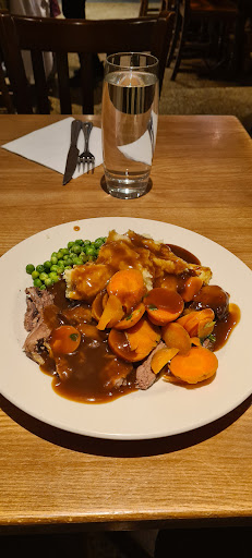 A really unenjoyable visit. The place was full of students using vouchers for cut price meals, meaning there was a lot of faffing about at the till and HUGE queues at the carvery. There were up to three chefs behind the hot plates but two of them were doing takeaway orders. This isn't what you want to see when there are over 20 people in front of you. The chef cutting the meat did his best and tried to get the queue down quickly, but again he gave out a pathetic portion of really low quality, fatty meat. Is there a meat shortage or something?? It cost me nearly £30 for two drinks and two meals and it was rubbish. Half the veg dishes were empty and it wasn't pleasant waiting around for them to be hopefully filled up while a queue full of people are willing you to get out of their way so they can finally get served. My two pathetic slices of gammon were so fatty I couldn't eat them. Literally the only good thing about the night was the beef dripping roast potatoes. They were lush. Everything else was a disaster....