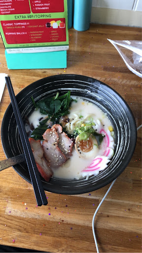 The bubble tea was also the worst we have ever had, and we have tried from many places in Brighton and Worthing. The first one they filled with ice even though we requested no ice. The second one was just white (?) with very little taste. First time we couldn't finish a bubble tea. The whole experience was topped off with not receiving any napkins or cutlery, and there was nowhere to get them ourselves. They seemed too busy to ask too.