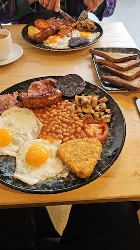 First time here today. Had the big English breakfast. It was faultless. Excellent quality, good portions, not oily, hot toast and hot plates. Added tea ( proper pot) and coffee and black pudding.