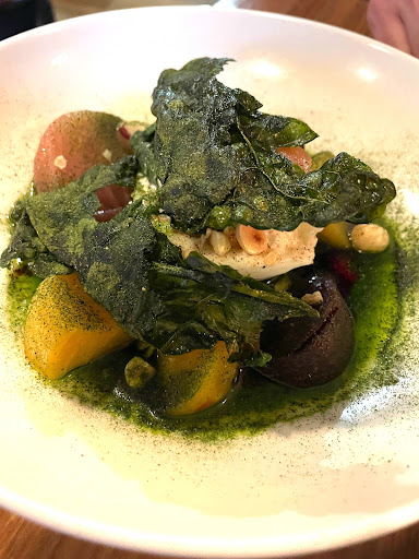 The food: On the food front, the meal began on a high note with the burrata dish, which was genuinely excellent (see photo). It was vibrant, nuanced, and the flavours were impeccably balanced. In contrast, the second dish we received - the asparagus dish - despite its visually compelling presentation, lacked the depth and sophistication its appearance suggested. Frankly speaking, it delivered very little by way of joy or satisfaction. The lamb dish also disappointed, undermined by an overly fatty cut and sides that disappointed: eg the lettuce had a sandy grittiness to it and an overpowering char that detracted from the dish’s overall harmony. Finally, the trout dish was lovely but really hard to conceptualise as a sharing plate when it didn’t naturally lend itself to being shared between two people.