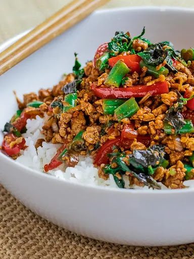 The mains came shortly after our starters were cleared and were very hot. I had the Pad bai kra pao and what arrived was nothing like I was expecting I did question with the staff but they were adamant this was the right order. My job involves me working all over the world with various nationalities and the Thai chefs like to cook this dish which is why I was excited to have it in the UK. The dish that arrived was very wet and was in a greasy soup mixture this was a dish that was meant to be stir fried according to the menu however the veg was very undercooked and the pork was very tough and dry. I have attached a picture below of what the dish was meant to look like and couldn't find any that matched what I had. The dish did have a alright taste but was very salty and oily.
