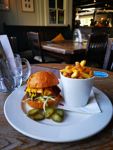 Read moreThe worst and most expensive pub food I've had in a long time. We had the beef burger which was truly awful and almost inedible. The very small bun was dry, hard and obviously old. The two small beef patties were also very dry, overcooked, chewy and hard and there was not much other filling except sauce. The server asked me if everything was ok, I told him what I thought and he just muttered something and walked off. And all that for £18.50, one of the most expensive burgers I've ever had. The chips were ok. My daughter had the chicken burger which rather than being golden brown was a dark brown colour as it was completely overcooked and tasted burnt. It was horrible. This was followed by a ramekin sized fruit crumble. The topping was very dry, tasted burnt, and like sand in the mouth. The filling was overly sweet and jam like. Served with average custard, and £8. So over £26 for two courses of awful food. We'll never be going back...