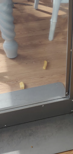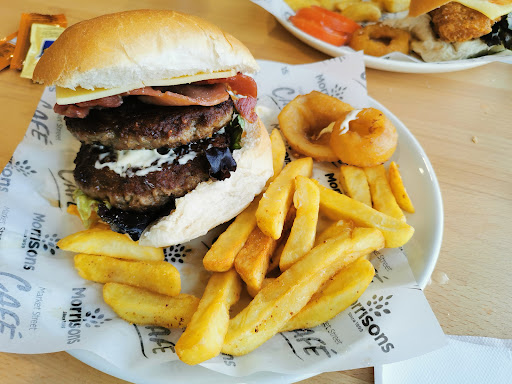 Today me and my parents ate at the café just after doing a small shop. We ordered our food and the lady was nice, very helpful and bubbly. We sat down in the corner, however the tables around us had been left with food on. Not a problem as someone would've come along soon to clear up. The table next to us wasn't cleared for about 20 minutes, and they didn't bother clearing all the mess off the floor either. If it was busy I could understand, but there was probably a total of 10 people in the café, not exactly a rush. When our food came it was lovely! We ordered fish and chips and it was really nice, good quality and value for money. However when the lady bought our meals over to us, she asked if we needed anything. We just asked for salt and vinegar, but she made it very clear that we should've pick up our own salt when we got our cutlery, in quite a rude, huffy way. Apart from that, the service was good. I feel that the dropped food on the floor needs looking at though, very unappealing to other people looking for a table to sit at, when there's a pile of chips and peas on the floor ready to be squished by...