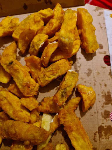 Ok I'm giving this plaice a 5* rating because it deserves a 4.5 and currently at level 4 rating. Perfect tasty coating on the chips but the chips could be freshly cut instead of frozen? (I'm being cruel and fussy but if you want to be the best in the country read on:) fish was perfect batter a tad sloppy on the underside (to be fair it was freshly served and was in the wrapper for a few minutes.... Again I'm being very picky it was very nice all the same) mushy peas very green .... Too green! Which would indicate they are coloured mushy peas to me....but again....I'm being picky.... They tasted perfect!) Garlic mayo.... Just a tip....do away with the bottles of sauce visible on the counter....instead have a fridge with pre-packed tubs of sauces. ...make your own garlic dip... simple: get the best mayonnaise add a clove of fresh crushed garlic and stir for every medium sized pot. (That taste of fresh home made garlic dip will be remembered by your customers who also appreciate your efforts in all that you do to create a clean fresh service of some of the very best fish and chips I have ever had! Take all this as a huge compliment ....and continue to do good and improve....never slow down ....never take it easy....continue to produce the very best. All the...