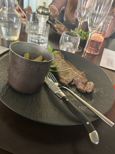 When we were brought our main - both steaks - they came grey and overcooked. We took one tiny bite and to our shock it was horrifying. It tasted sour like cheese, and smelt even worse. We tried cutting into the middle to check if it was just the overcooked parts we had but no the same grey meat met us and that tasted equally awful and we were stuck with the smell of rotting meat in front of us. With only a few bites missing (as seen on picture) a staff member walked over and asked us if we were done, we informed them that the meat tasted awful, was clearly overcooked beyond our requested medium rare and smelt awful. She took this to the kitchen and then came back offering us more steak which neither myself or my food companion could stomach.