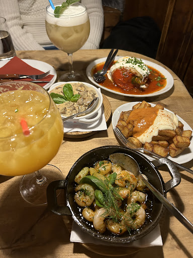 The dishes that we had were considerably smaller than your typical size. We started with two portions of Pan Ali Oli/Balsamico, we were given one small basket of bread with two small pots of each dip. We ordered two, so were very disappointed to be given such small portions. The manchego cheese dish had three small slithers of cheese, the camembert had no crackers, we were given small slithers of Spanish omelette, the patatas bravas all had minimal amounts of sauce on them. Overall, we were extremely disappointed with the food we received. We ordered 14 dishes in total, and we all left hungry. This should not happen at a restaurant.
