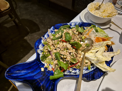 We wee immediately served our drinks of choice and started to pore over the menu. For me, there are two good tests of any Thai restaurant; Laab Kai, and Pad Thai. Which to have? Well, it was cold outside so I took the Laab, adding that it should be prepared fiery hot - my preference. Definitely all was as it should have been. I even asked if it could be served in iceberg lettuce leaves (they make nice cool wraps to balance out the fiery contents) and was provided almost a whole lettuce. Just fabulous - didn't even have to ask for extra creen chillies.