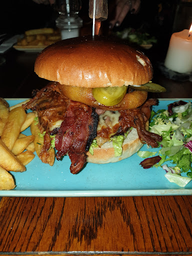 On getting into the bar I ordered a port and lemon for my sister as I was driving, and a diet coke for myself. The man behind the bar told me "we don't have any port", so she ordered something that he did have instead. We asked for a menu and were told that they were in the box. We looked around and found it on the wall, we looked through it and thought the choice was rather limited. Eventually we chose the slow cooked pork burger with apple sauce and stuffing served with chips and salad garnish. The meal was quite a while coming, and after thanking the waitress we started by opening the burger. There was a marble sized ball of what I think was stuffing, and a piece of soggy rind fat about 10cm X 4cm, but no sign of meat anywhere. It also contained salsa on the base of the bun, which was not mentioned in the menu ( my sister hates anything spicy). I called over the waitress and told her that our meal was unacceptable, I showed her the two pieces of fat served inside our burger. She apologized and took the plates away. Then the man that served us at the bar came over and told us that it was his favourite item on the menu. I explained that we understood it was going to contain slow cooked pork, not just pork fat rind. He asked me if we wanted to order something else, but we felt we had wasted enough time here and there was nothing else we fancied after that. He didn't offer to discount a meal or a drink to compensate us so we decided to go...