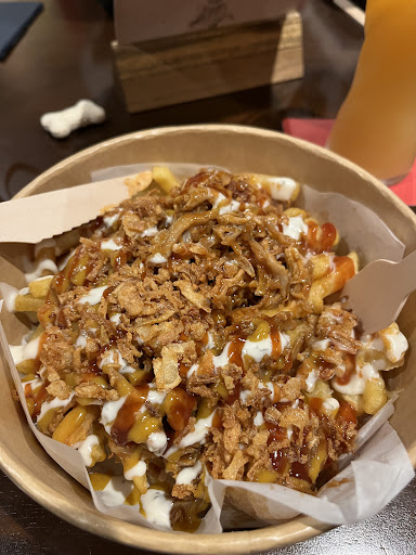 Love this place especially the burgers but not this time No chicken mayo burger with crispy onions etc . I ordered it but 10 mins later got told they ran out but could don a turkey burger,I said no worries I try it. Unfortunately it was over done really no crispy onions just slapped together and tbh not where the turkey burger came from as it could of been any old frozen shop thing The hot chocolate nice but not the same description on plank,no nuts Carmel biscuit just hot choc squirty cream marshmallows. Not bad but for the price could of better hot choc and served on a saucer or small plate Anyhow would definitely give a 5 because the menu burgers are really good , but this occasion 2 x Atmosphere was good and a lovely young...