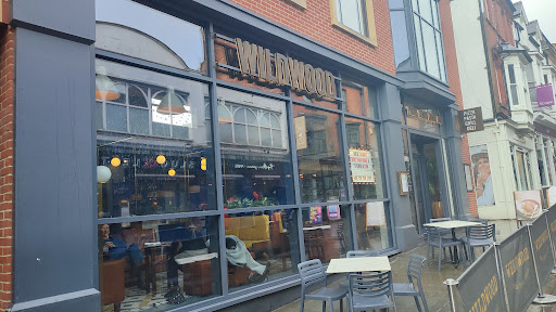 I ordered a £15 peri peri chicken, my partner ordered a £14 Philly Cheese steak pizza. We'll start with mine. I got a single, dry, half burnt chicken breast, a handful of rocket and a silver cup of chips covered with COARSE rock salt, and i mean coarse. One lump was the size of a 5p piece. I had to send them back, they were inedible. They took just the chips, not my whole plate, so i was left 5minuted whilst my burnt, dry chicken also went cold. My partner offered me a slice of her pizza whilst she waited. 'Philly cheese steak with smatterings of chimchurri...' it was advertised on the menu, quite literally the least flavoured pizza i've ever eaten, if i hadnt just tasted something so salty i nearly got kidney-stones, i'd have thought i had covid, thats how bland the pizza was. So, my chips arrived back, still covered in salt, now slighly less than before but also the surface temperature of the sun. We ate, my Peri Peri Chicken was about as marinated as the philly cheesesteak pizza, zero flavour. So we finished.. And waited. And waited. And after 20minutes called a waitress over to ask her to take our plates and if we could get the bill (not sure why this took as long as it did, still only 4 of us in the restaurant). So, bill came back, not only had they not removed anything for the salt with a side of chips, but they also wanted to charge us a 10% service charge for the honour of being ignored for 20minutes with empty plates in front of us. Now, i'm not normally the type to argue an 'optional' service charge (is it really optional though if its already added to the bill when it gets to you?), but in this instance i certainly wasnt going to pay it. Had it removed and we left . First and last time we go to Wildwood, the restaurant that makes you question whether its covid or...