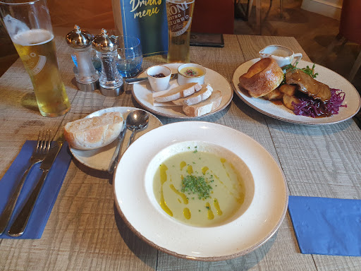 Meals were mediocre. We had roast, soup and pate. Roast gravy was missing the promised flavour of horse radish. But anyway potatoes were hard as stone also meat was chewy definitely not pink, vegetable needed bit TLC but cabbage was nice (therfore a second star and the environment is nice but soulless). A lot of dishes had the same pungent taste tail, like soup or onion chutney. I wasn't in a mood to argue about the bill but we asked for 2 course menu (main and a pate 22,95) and extra soup and asked to get it all together as a main. Then we have been charched separately for each meal. 17,95 roast, 5,95 soup and pate 7,95. No bill treat. I guess it is confusing for staff if you give "Sunday ala carte menu" very similar to "Sunday roast menu". I am not cheap but as mentioned I worked in hospitality for a while and I would never charged customer extra if there is a way to make it cheap as possible and they were always pleased.
