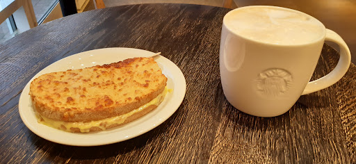 Read moreIt was a bit busy when I visited but Starbucks are masters at quick and efficient service. There were literally 5 staff all behind the counter: one on the till, 2 baristas, one stock checking and one emptying bins. Despite all the staff the place was a mess, not one table was clean and even the areas for making coffees were messy. Every type of milk was out, all the taps were running, the bins were out, rubbish was left on the service counter. I've never seen a Starbucks that messy and yet it's not the busiest I've been to. This Starbucks isn't very big and they've put all the seating in one area so it makes it difficult to navigate out when you're just getting a takeout coffee. The reason for 2 stars and not 1. They got my coffee right and the service wasn't bad - I was just disappointed it wasn't very clean, it doesn't create the right atmosphere to sit and relax to...