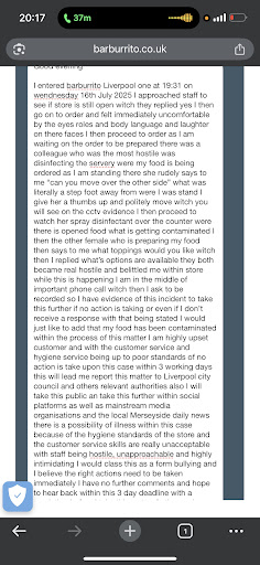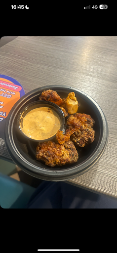 Read moreOn Monday 17th February me and my sister approached what we perceived as a pleasant looking place to eat. However Wasn’t welcomed once entered, found ourselves our own table and then came and ordered. With no indication or instructions we ordered what we liked the look off on the pictures and what sounded nice. With rude snappy comments from staff after we asked which salsa would be least spiciest, and which options weren’t vegan. Once sat down we still needed our “crispy chicken” which we had ordered that was a 25 minute wait following a tiny portion of what looked like moldy cold dried up chicken with a plain flavorless sauce on the side which had been thrown at us by a member of staff with no comments or even a slight smile. Regarding this issue I then asked for a refund on just the chicken. The women (staff) then approached to refund us which to this day we still didn’t get any money followed. Overall, a terrible experience and will not be coming back. Do not recommend if u want a nice chilled happy environment, this is the COMPLETE opposite, very disappointed. Here is a picture...
