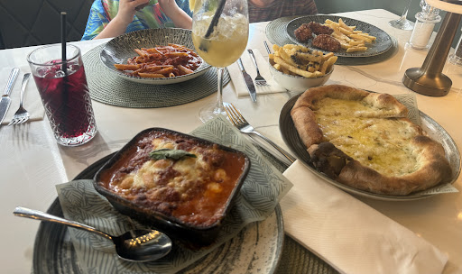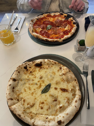 Visited on a Friday afternoon for the first time. The restaurant was busy. The decor was lovely and the entire place was well furnished with a pleasant atmosphere. Upon entering there was no service from the young lady at front of house. We were not greeted or welcomed, but instead stared at until we requested a table. Staff seemed frantic and not very aware of what they were doing overall. It took around 5 minutes to be seated which was okay, however once seated we were completely ignored by all staff despite them walking past our table doing seemingly nothing numerous times. We waited 25 minutes before asking ourselves if we could please order food and drinks. The member of staff we spoke to stated that somebody else would be by to take our order and we waited an additional 5 minutes for this person to arrive. We ordered a freshly squeezed orange juice and a peach bellini for drinks. These took around 20 minutes to arrive and they were sat on the bar for a while. Servers approached the bar and checked the ticket when both drinks were on the tray however they were still not brought to us. The peach bellini was not a bellini but rather just prosecco. I did not ask for a replacement as the initial drink took so long to arrive. Additionally, the freshly squeezed orange juice came in a small water glass filled with ice despite being £4, so there was not much juice for the cost that you pay. The food arrived in good time and we ordered 2 pizzas and halloumi fries. The food was nice but nothing to rave about. No staff checked on us for the entire hour we ate, nor asked if we wanted any refreshments when our glasses were empty. I think that this place could be really amazing if the staff knew what they were doing and there was actual customer service. Whole vibe felt like nobody knew what they were doing, and we even had to affirm to our waiter that a peach bellini was in fact on their menu when he asked us what it was. Not worth the visit...