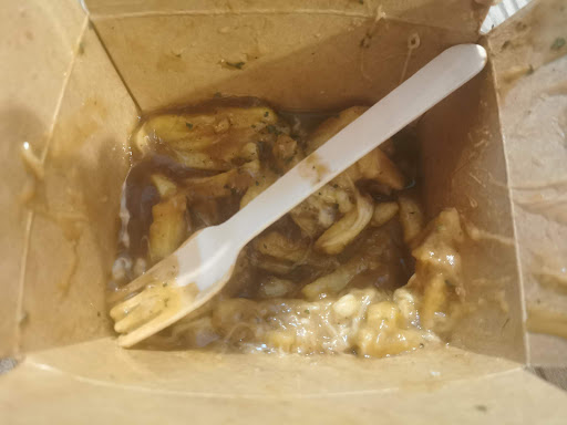 Meh! Chips, cheese and gravy should be as lovely as it sounds but there are issues here that means 2 visits were enough to put us off a 3rd. 1st time was OK, the vegan poutine was very nice, a bit of spice to the gravy and once I'd added the crispy onions it was really tasty. My OH had a steak special but the steak was rubbery. Although the Cinnabuns are gorgeous £3.20 each is way to pricey, a nice trest though. 2nd visit, they were out of a lot of ingredients and I nearly walked into a trap by ordering a vegan mozzarella fella...after questioning the ingredients it turned out that the mozzerella wasnt vegan and they used the same cheese as the vegan poutine, seeing as they were also out of onions, I would have paid them a couple of quid more and just got the basic vegan poutine if Id not spotted it. The server had no allergy knowledge about lactose presence in mozzarella...kept saying it was vegetarian when I was asking about whether it was real dairy and had lactose, the menu board says ask for vegan (and you can get vegan mozzarella subs elsewhere)! We ended up with a really disappointing meal, 50% of the chips in the container were fluffy and had the unpleasant texture of reheated chips. Had stomachache for hours after eating them. The vegan salt and pepper nuggets were bland and dry, not the salt and pepper heat and lovely flavour expected at all and expensive for portion size too, the buffalo chicken pieces worked out at a £1 each but were the size of a fat finger each and covered in a horrid acrid sauce. Never going back. Make our own poutine 1000x better at home. Some really miserable staff members on...