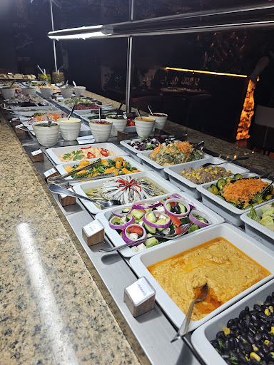 Buffet style restaurant with 30+ sides. You grab a table, order a drink, head over to the buffet and grab some sides. All the sides were immaculately presented like they were just made/placed there. They continuously bring over meats until you turn over your card from green to red. All of the sides were very tasty. The pork sausage was strong in flavour, the rump steak was slightly chewy, the beef ribs were tasty, the sirloin was a little tough, the tri tip rump was well seasoned and surprisingly tender, the chicken thigh was juicy but the marinade was a bit different, the minted lamb was very tasty but the waiter couldn't tell me what cut it was and said that he just serves the meat; I think it was lamb leg or shoulder. The rump cap was amazing - well seasoned, cooked rare, so juicy. I was the only person in the restaurant so it felt like I was being waited on. The meat came out quite often: it came out on a stick and the waiter would slice off a piece then send the rest back. I think a lot of food was wasted 😞. I think this place is best for groups of people. I had a cosmopolitan, it was very boozy, and a Hendricks gin and tonic - it came with slices of lemons and limes, but it is best with cucumber. The meat waiter was very nice, the drinks/general waiter spoke very softly and I couldn't hear what she was saying. The room interior was quite nice and the music was well suited. I would recommend...