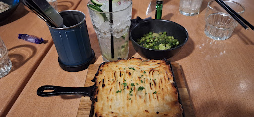 We were excited to eat here on a day trip to Liverpool but sadly I feel like our experience doesn't match that of others who have reviewed Down The Hatch on Google. Firstly, we should compliment the enthusiastic young man who served us throughout the evening. He was attentive, polite and a good fit for the role. We didn't catch his name. The food, however, wasn't as impressive. I ordered fully loaded fries with a vegan donner meat style topping, but I was ultimately disappointed with what was presented to me; the donner was completely saturated in oil and had no flavour. It was dumped on top of a small portion of the cheapest possible frozen french fries. It came with a vinegary side salad that saturated the plate and wasn't nice to eat. We got a portion of bbq seitan wings too and they weren't too bad, just a bit dry and the sauce tasted like that cheap chef's larder sauce. My partner ordered a shepard's pie and it was served in a tiny pan. Honestly, it was about 3 X 3 inches, mainly potato, and totally lacking in any vegetables or meat. It was a premium price too so extremely disappointing. I was still hungry so I ordered the "famous" biscoff cake for nearly Β£8 and I received a stale piece of average sponge with a hint of biscoff flavour. The other aspect of the visit that we found particularly annoying was the seating arrangement. The place was empty when we arrived, and yet, as more customers turned up, they were seated at the tables right next to us, leaving none of us any privacy in a large restaurant with easily enough room to space us all out a bit. The music was also a bit invasive. Sadly, we won't return. I understand that restaurants have overheads to make, but our hard earned money went nowhere...