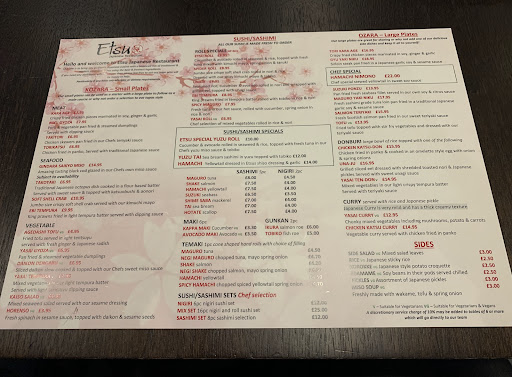 Overall I do give Etsu a 5/5 for everything from the ambience, the decor, the customer service, the food. If I had to give an improvement I would say the sashimi could be nicer, but apart from that I really really love the restaurant and I do plan to still visit once a year (or more), It is in my respects the best Japanese restaurant in Liverpool so do give it a visit. I have ordered other starters from the menu and would happily recommend others if people wanted to message me on...
