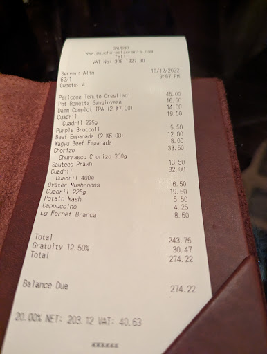 I just beg if anyone one from Gaucho reads this, clean the damn bar of the empties. It was like a glimpse into my lads student kitchen.