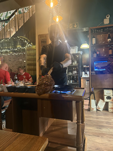 We ordered the tomohawk and the Kassap steak along with four portions of fries. The food took just over an hour to arrive. The food itself was "okay". Presentation could have been much better. Staff seemed to have little idea as to what was going on. For example, with this establishment being of Turkish ownership we asked for some "Baklava" at the end of our meal as a dessert however the waitress seemed to have thought this was some form of beer! The waitress had to call over one of her colleugues to come and help her as she had no idea what this was(?)