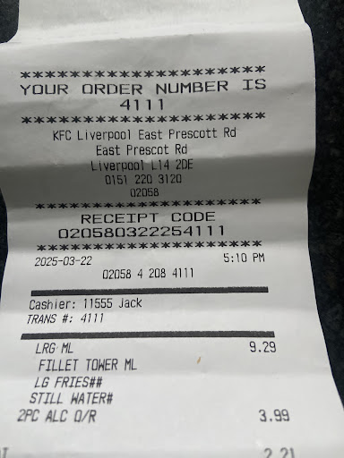 I recently visited the KFC in Huyton, and unfortunately, it was an extremely disappointing experience. The reception staff and the manager demonstrated a complete lack of professionalism and customer service.