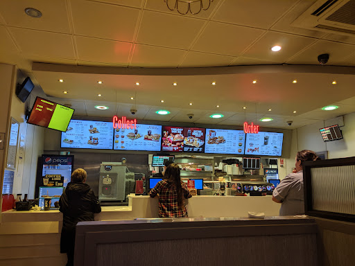 Absolutely disgusted with the service or should I say lack of service we received today. We approached counter and the member of staff asked for our order we could not remember the name of the meal apart from it being a Zinger meal but it had a Hot sauce the Girl said they all have sauce explained again that it was The Zinger burger with Hot Sauce and it had cheese on. My husband said that it may have been taken off menu and then ordered the plain Zinger Box meal. I ordered a 3 piece meal and requested if I could have A drum stick with the zinger burger instead of the wings. We also enquired about the New Bacon Burgers as it was advitised and she said there's all different types of them so I asked for more information as there is nothing on Menu boards and I was told don't know just know there different types of them with sauces was not helpful to us at all. After we paid we then seen the Meal that my Husband had asked about and quickly asked that the meal be changed and I would pay the extra cost 20p. I was told in no uncertain terms that I could not change my order I explained to her that when we approach the counter we enquired about the Zinger Burger with the Hot sauce she said I didn't I asked to speak to the Manager who at the time was already dealing with 2 different complaints at the counter when it was my turn I tried to explain to the Manager and the member of staff was then abusive to me saying that I had only enquired about the New Bacon Burgers. That is totally untrue we enquired about them AFTER I had paid for our meals. The Manager asked young male staff member to change the Zinger Burger to a Zinger stacked meal at no extra cost 20p. Then to top it off when I got home with our meals I was more than angry to find that my 3 piece meal had 3 Drumsticks in bag with Fries. And NO DRUMSTICK. I am totally annoyed and very disappointed with the service we...